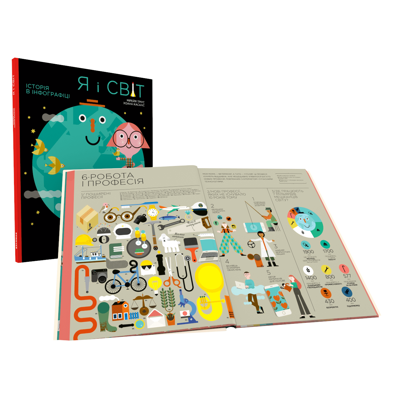 Статистика у захопливій формі. Завдяки інфографіці маленький читач легко засвоїть цифри, зрозуміє у скільки разів Китай більший за Україну, вивчить поняття «густонаселеності», дізнається, що таке ханок і його синонім в Монголії, а також яка книга є найпопулярнішою у світі.